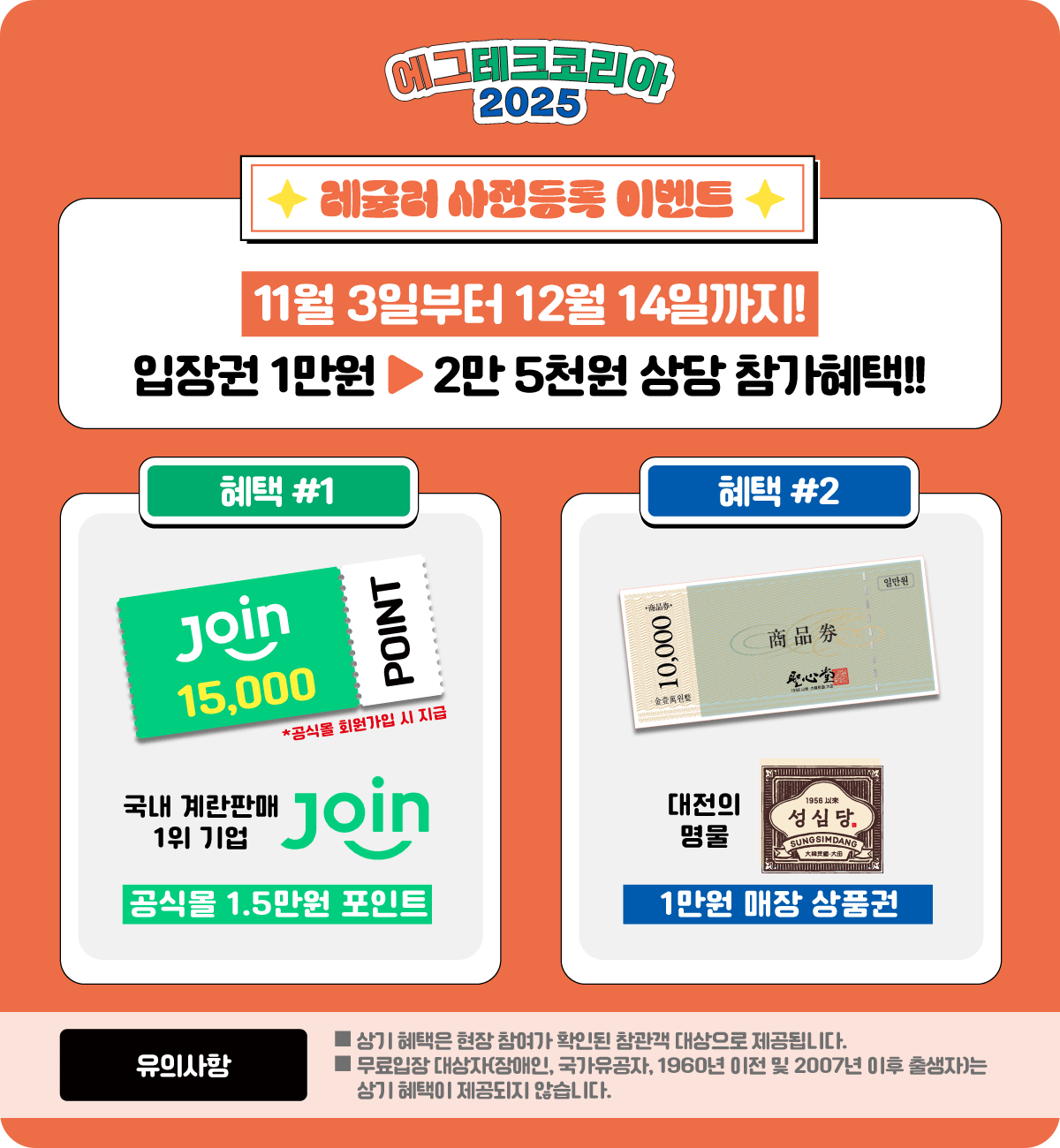 유의사항에그테크코리아 2025에 참가하실 관람객분들은 등록하시기 전 아래 유의사항을 꼼꼼히 확인하여 주시기 바랍니다.